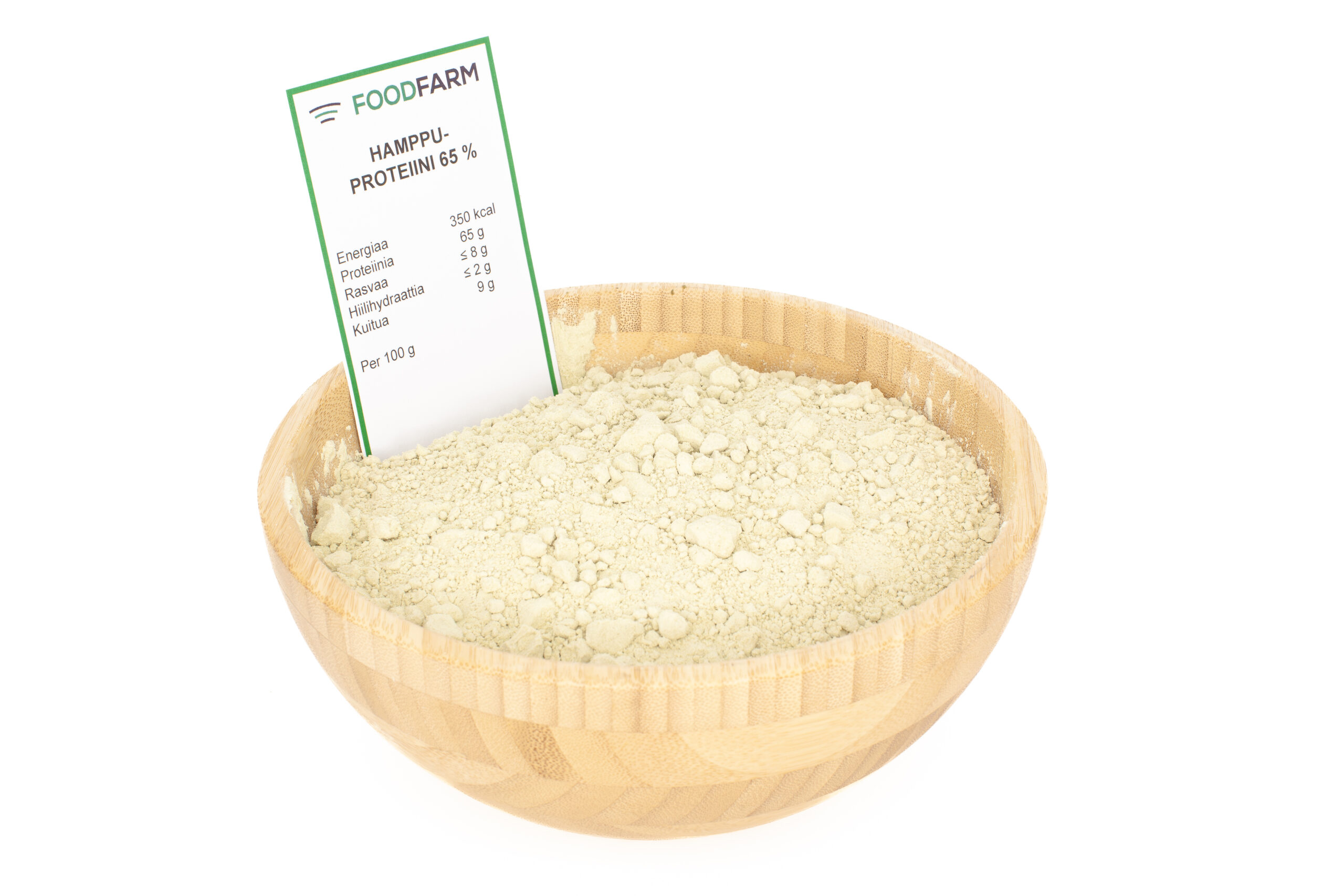 Erittäin korkean proteiinipitoisuuden omaava, hienojakoinen lippulaivatuotteemme, 65 % proteiinikonsentraatti valmistetaan kuoritusta hampusta öljynpuristuksen yhteydessä. Vaalea väri ja neutraali maku mahdollistavat proteiinin käytön todella monipuolisesti. Proteiinikonsentraatissa korkea proteiinipitoisuus koostuu 20:tä ihmiselle välttämättömästä aminohaposta, jotka ovat helposti imeytyvässä muodossa. Tuote on erittäin vähägluteeninen.